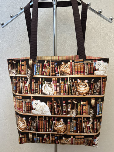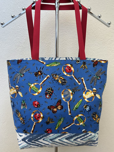 Tote Bags are approximately 17” wide by 13 1/2” high by 4” deep. The drop is approximately 12", so bag can be carried over shoulder or in hand. All tote bags are lined. Fabrics are either 100% cotton or cotton / polyester blends and are washable (unless stated otherwise in the individual product description), permanent press cycle, and should be washed in a lingerie bag so that the straps don’t get tangled up. Dry on low or medium.